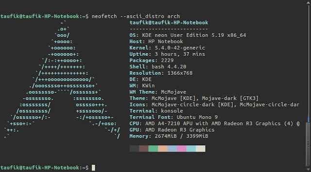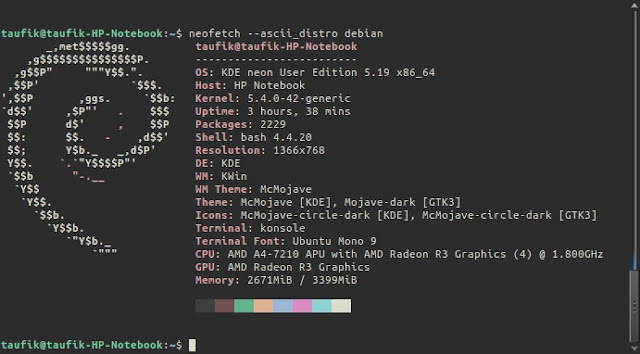 Selain menampilkan logo distro yang digunakan kita juga bisa menampilkan dengan logo distro Linux lainya. Untuk menampilkan logo distro Linux sesuai keinginan maka gunakan command berikut.